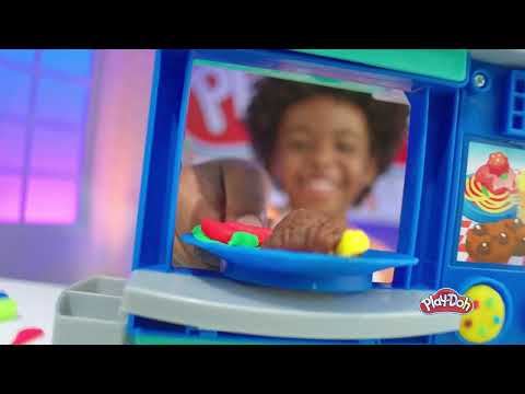 Met de Play-Doh Kitchen Creations Busy Chef's Restaurant-speelset hebben kinderen het gevoel dat ze hun eigen restaurant runnen: ze maken, veranderen en delen Play-Doh-gerechten met ingebeelde klanten! Kinderen kunnen de stempels eenvoudig bevestigen en pizza, hamburgers, pasta of kip namaken. Duw op de hendel om 2 namaakgerechten tegelijkertijd te stempelen! Als ze de hendel loslaten, verschuift de bakplaat naar het bereidingsstation!